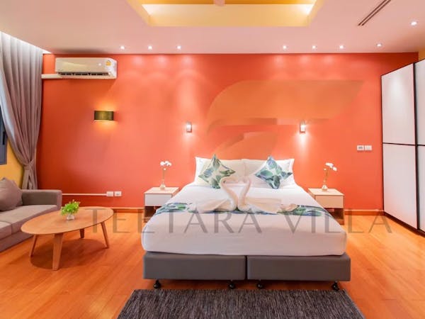 The rooftop pool and hot tub are the standout features of this villa. Boasting a private entrance, this air-conditioned villa comes with 1 living room, 5 separate bedrooms and 5 bathrooms with a bath and a shower. Guests will find a stovetop, a refrigerator, kitchenware and an oven in the fully equipped kitchen. The villa also includes a barbecue. The spacious villa features a washing machine, a seating area, a dining area, a flat-screen TV with streaming services, as well as sea views. The unit has 11 beds.
