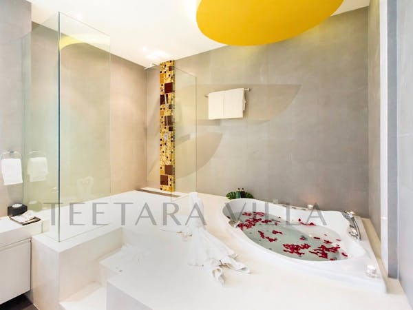 This villa's special features are the rooftop pool and the hot tub. Featuring a private entrance, this air-conditioned villa consists of 1 living room, 4 separate bedrooms and 5 bathrooms with a bath and a shower. Guests will find a stovetop, a refrigerator, kitchenware and an oven in the kitchen. The villa also offers a barbecue. The spacious villa provides a washing machine, a seating area, a dining area, a flat-screen TV with streaming services, as well as sea views. The unit offers 11 beds.